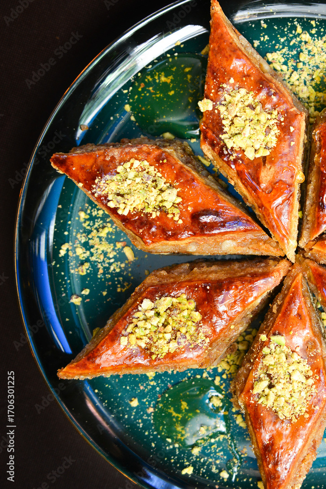 Baklava with walnuts. Homemade baklava with nuts and honey.