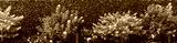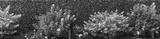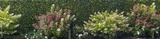 (Hydrangea paniculata) Arranggement Panicles hydrangea shrub lined up in landscape border with varieties of canonical white and pink-reddishflowers contrasting with dark green oval toothed foliage