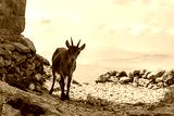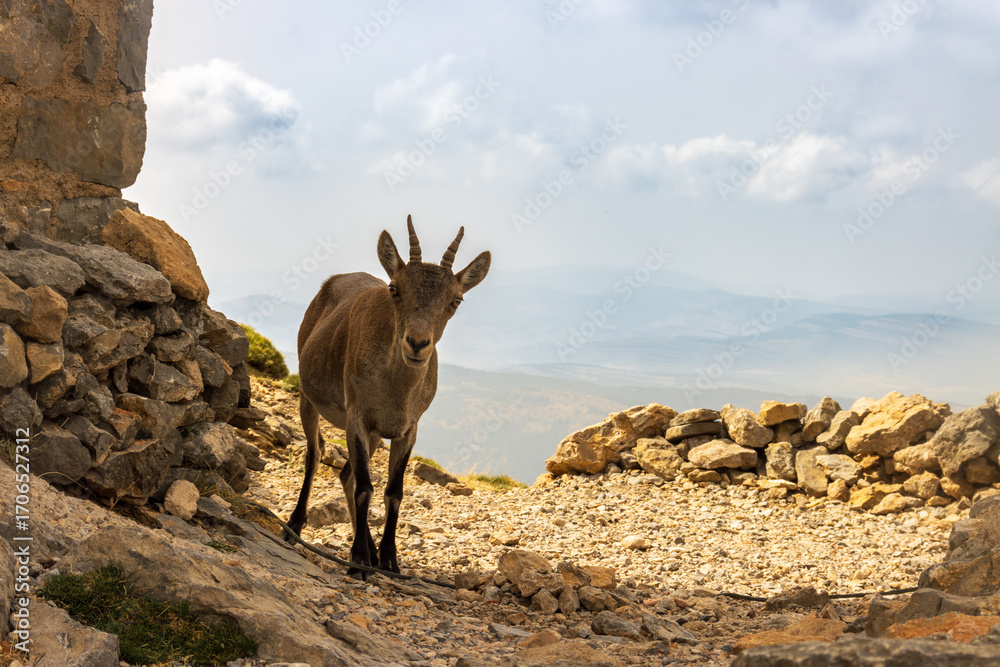 Iberian ibex standing on the top of penyagolosa mountain in spain