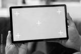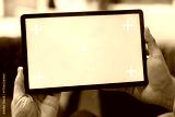 Businessman in a luxurious office looks at green screen on tablet and analyzes infographics, setting company goals and implementing strategic planning for a fruitful business. Close up.
