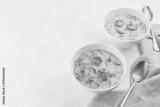 Two bowls of Portuguese style soup Caldo Verde on white background