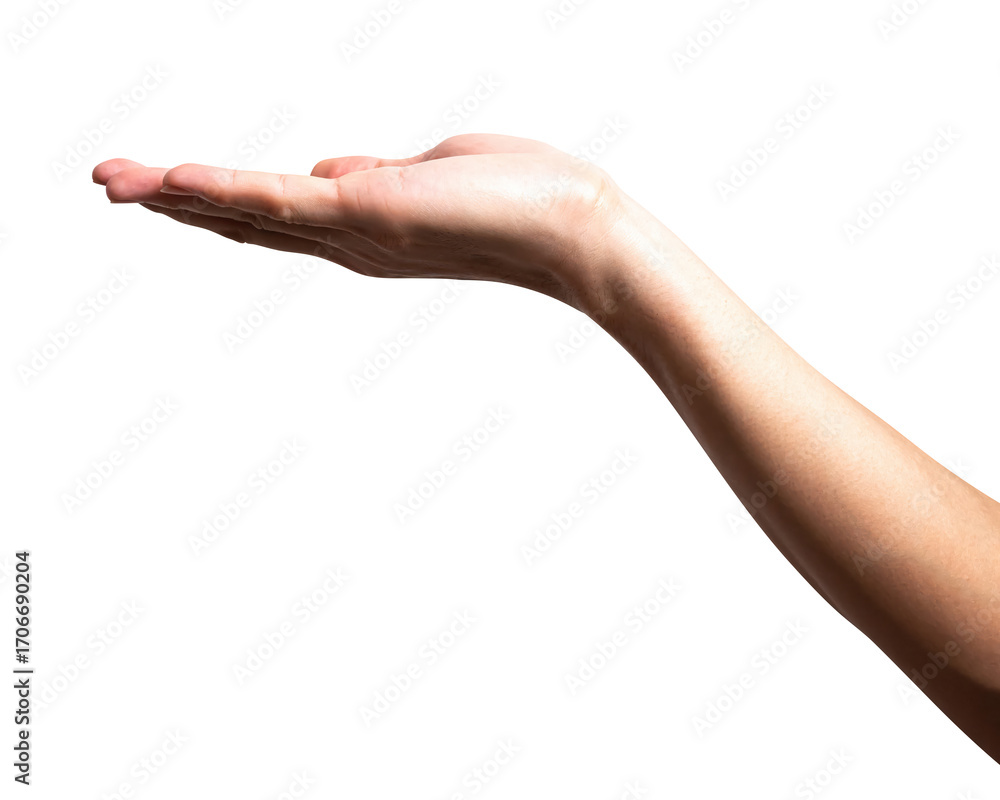 Male hand reach and ready to help or receive. Gesture isolated on white background.
