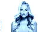 Blond woman with long curly beautiful hair.