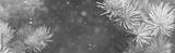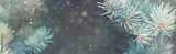 Snow fall in winter forest. Christmas new year magic. Blue spruce fir tree branches detail. Banner image