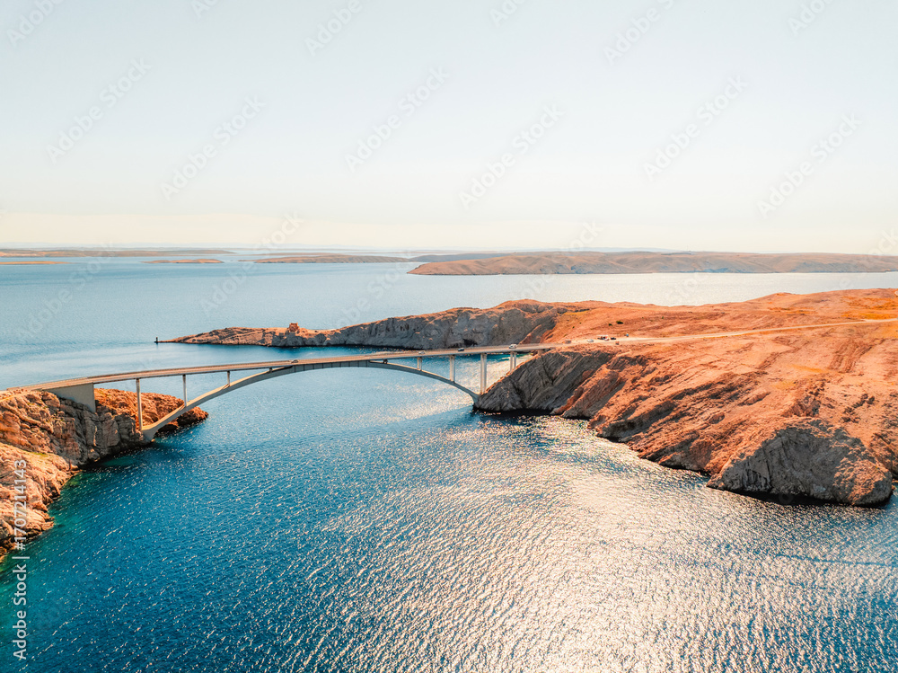 Pag bridge to the island of Pag. The Paski Bridge connecting the island of Pag with the mainland of Croatia