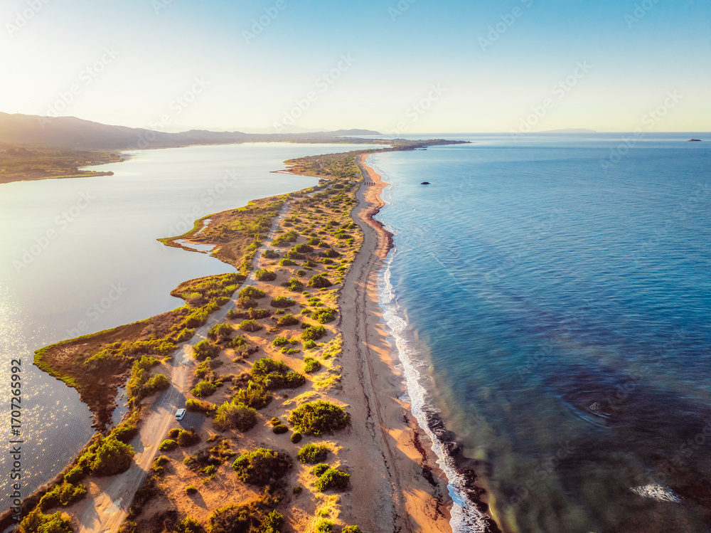 Ionian Islands Corfu in Greece. View of the breathtaking Halikounas Beach and Lake Korission.