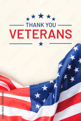 Veterans day. Beige background with American flag. Website banner and greeting card design template.