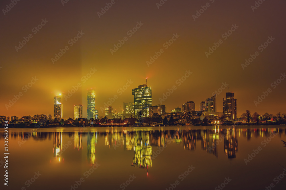 Vienna skyline at misty night