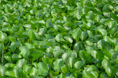 Background pattern and texture of a collection of green water hyacinth leaves. Ecological and environmental concept. For graphic design, 3D rendering and banner background