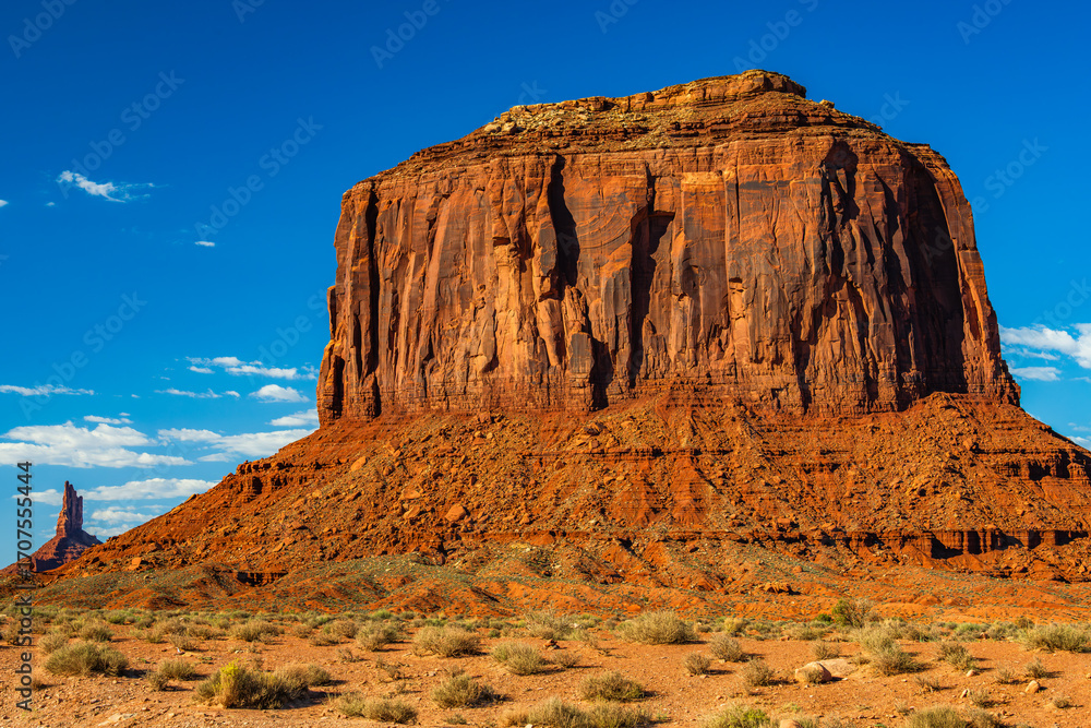 The redrock desert and spires of scenic drive in Monument Valley Navajo Tribal park in Arizona United States of America.