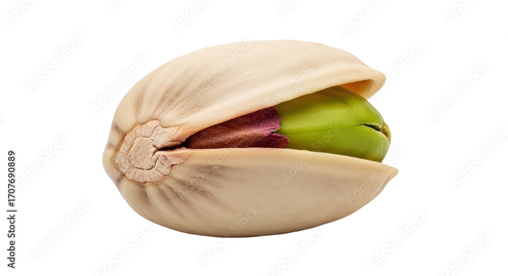 Isolated Cracked Open Pistachio Nut Showing Seed and Shell for Snack Food and Healthy Eating