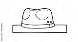 Isolated classic fedora hat with brim line art for coloring book or logo design vector