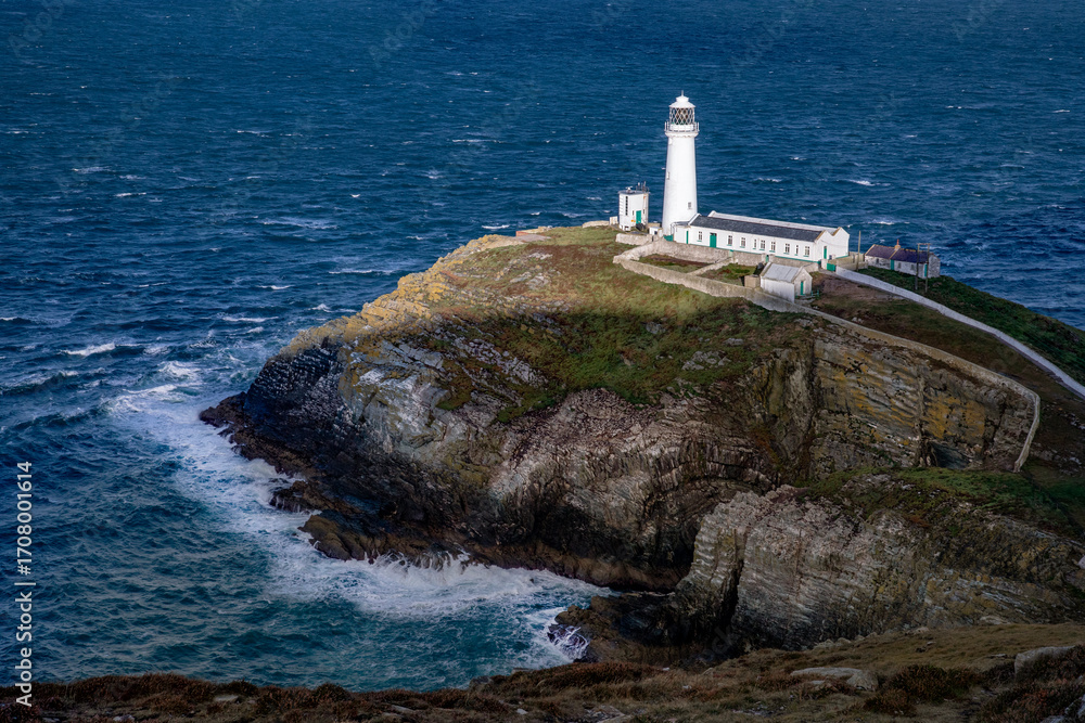 South Stack Lighthouse on the island of Anglesey in north Wales in the United Kingdom. The lighthouse was built in 1809.