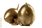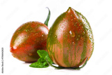 Fresh Ripe Mangoes with Water Drops and Basil Leaves Still Life
