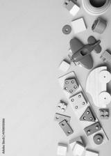 Set of different children's toys on a colored background top view.. Vertical photo format