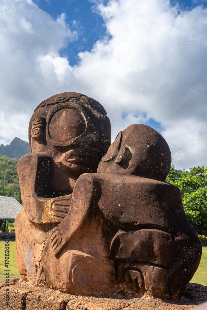Ancient tiki statue in Atuona, Hiva Oa, Marquesas Islands, French Polynesia