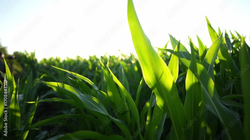 corn field agriculture. business a farm maize concept. farming industry plantation land. corn green grass close-up farming healthy natural food. lifestyle harvest corn concept