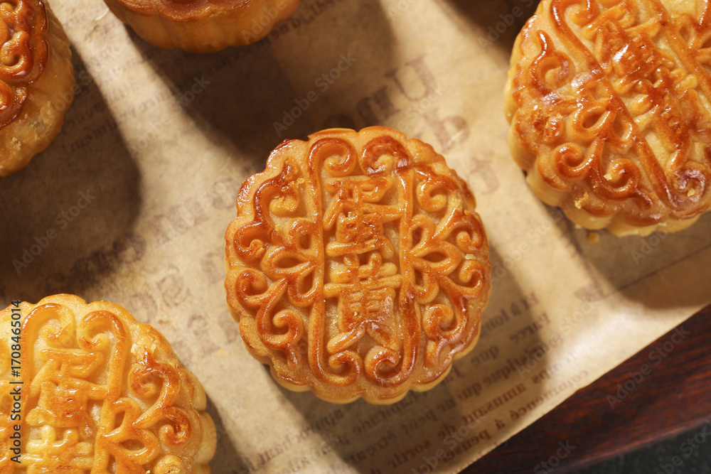 Traditional Chinese Mooncakes with Lotus Seed Paste and Egg Yolk for Mid-Autumn Festival Celebration