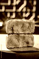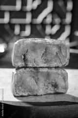 Traditional Cantonese Mooncake with Lotus Seed Paste and Egg Yolk Filling Cut in Half