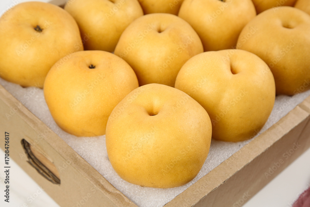Fresh Golden Laiyang Moon Pears from Shandong China in Wooden Crate - Premium Autumn Harvest Fruit