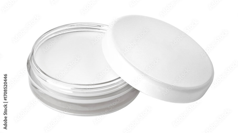 Open cosmetic cream jar with transparent background for beauty product mockup