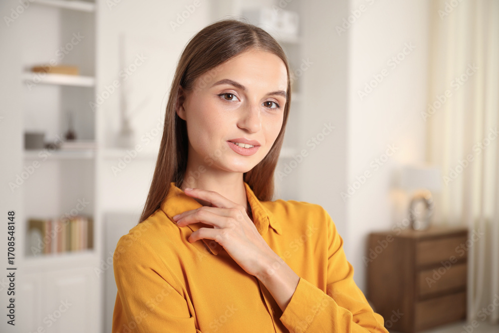 Portrait of beautiful young woman at home