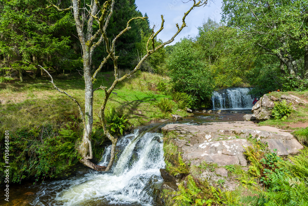 Scenic view of the Blaen-y-Glyn waterfalls in Brecon Beacons National Park, Wales