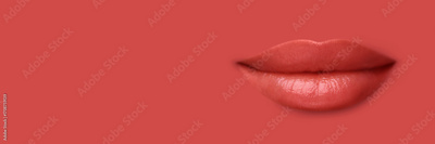 Woman's lips against background matching color of her lipstick. Banner design with space for text