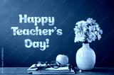 Happy Teacher's Day greeting card with flowers and text on green chalkboard