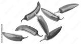 Green jalapeno peppers flying against white background