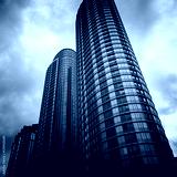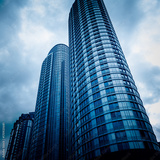 architectural complex against sky in downtown tianjin,china.blue toned.