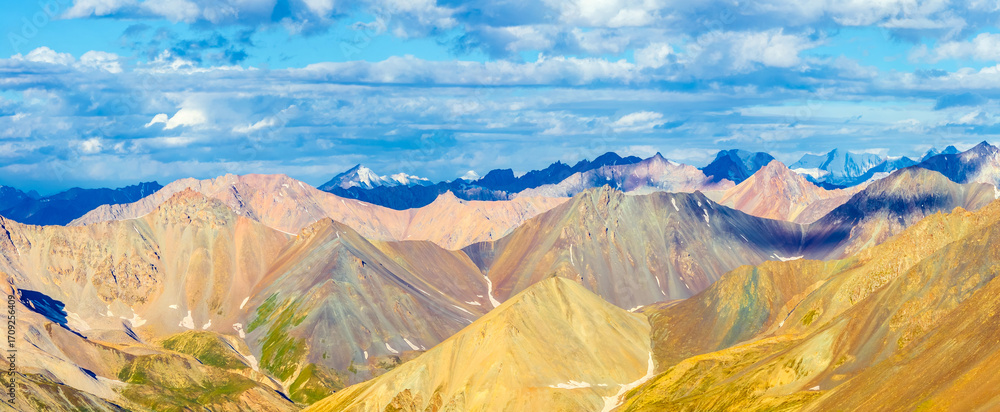 Majestic mountain range with vibrant hills natural landscape in Xinjiang, China.