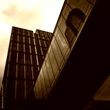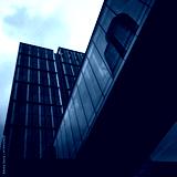architectural complex against sky in downtown tianjin,china.blue toned.