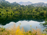 Small alpine lake amid autumn hues in Sary Chelek Biosphere Reserve