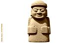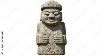 Isolated Dol hareubang statue of Jeju Island, South Korea as tourism landmark & symbol