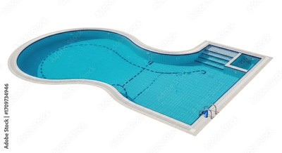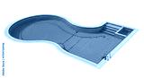 Isolated swimming pool featuring a freeform shape with steps and handrails for accessibility