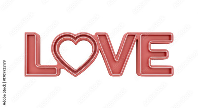 Isolated 3D LOVE Text with Heart Valentine Decoration Concept Lettering Sign and Modern Pink Tone