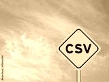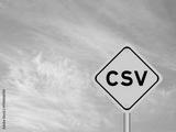 Yellow transportation sign with word CSV (Abbreviation of Computer system validation or Comma-separated values) on blue color sky background
