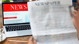 business woman using tablet pc for reading news