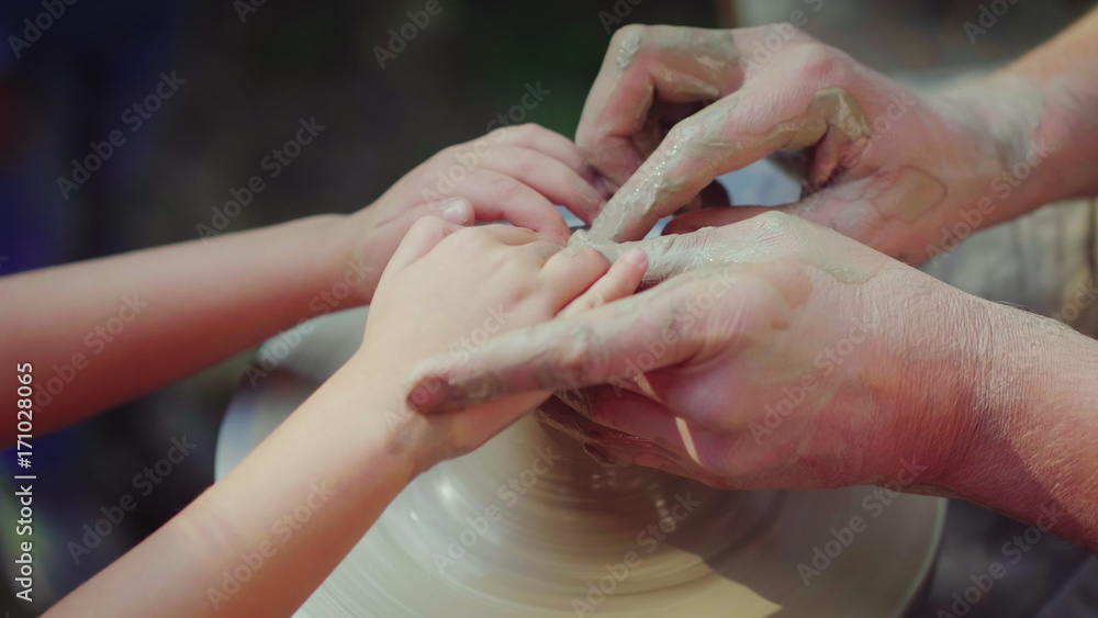 Master potter teaches the child his skill. The concept is the transmission of experience by generations