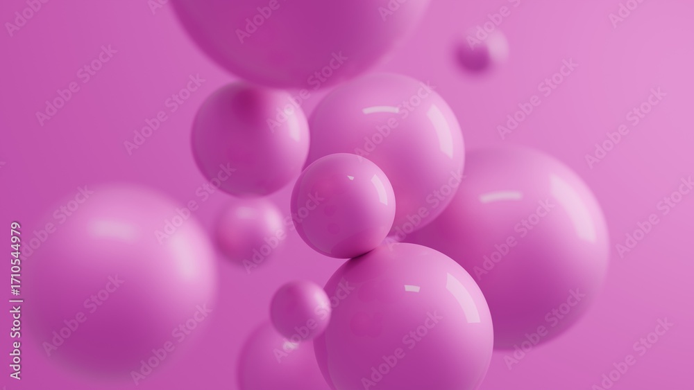 Abstract colorful pink balls. Chaotic scatter spheres. Festive party wallpaper. 3d render