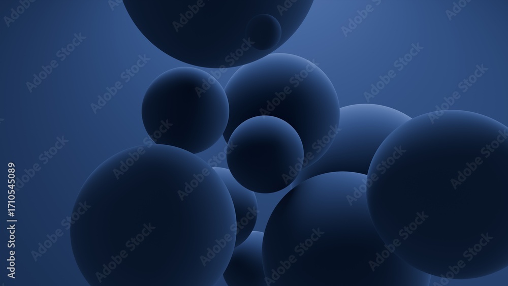 Abstract colorful blue balls. Chaotic scatter spheres. Festive party wallpaper. 3d render