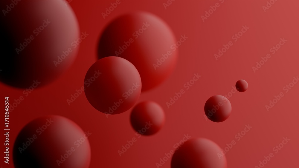 Abstract colorful red balls. Chaotic scatter spheres. Festive party wallpaper. 3d render