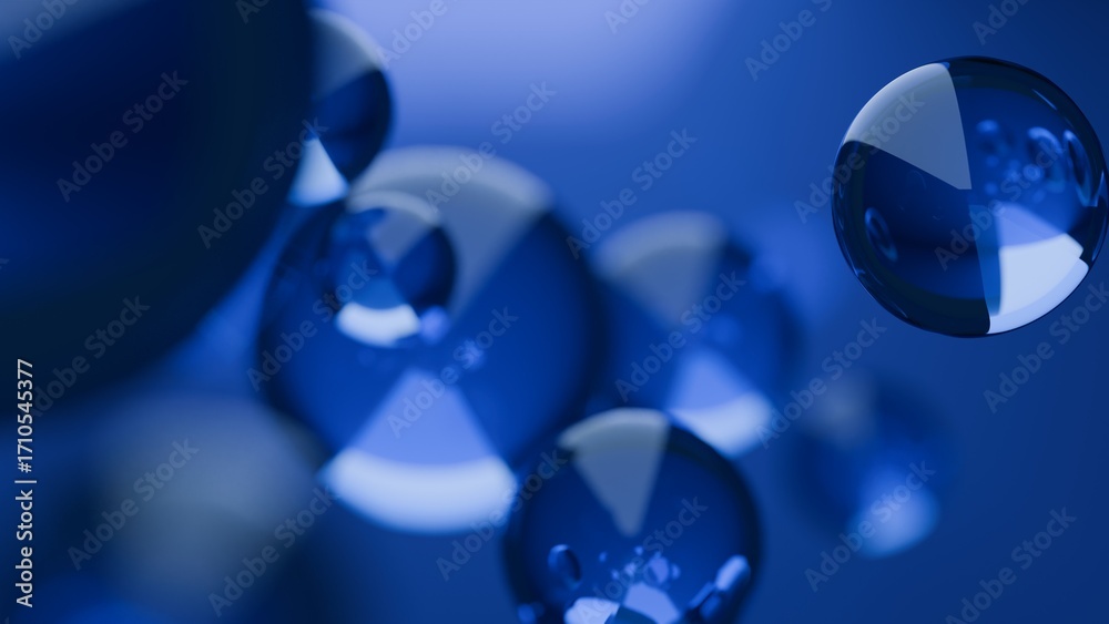 Abstract glass blue balls. Chaotic scatter spheres. Festive party wallpaper. 3d render creative background.