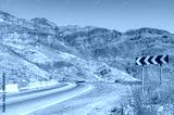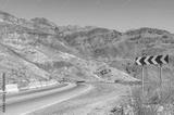 Paved road in the Boom Gorge in Kyrgyzstan. A mountain road through colorful clay hills.