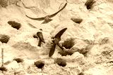 Nistende Uferschwalben an den Klippen der Insel Hiddensee
