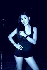Happy beautiful young Asian woman smiling at night
