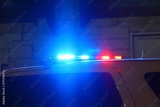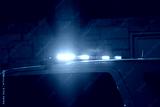Flashing police car lights at a night time crime scene