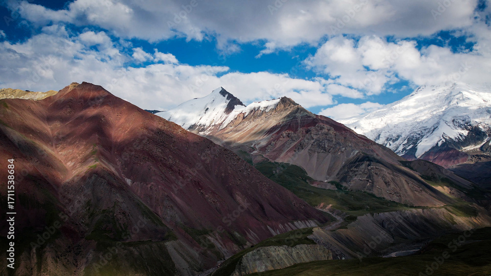 Colorful Pamir ridges near Lenin Peak Base Camp, Kyrgyzstan