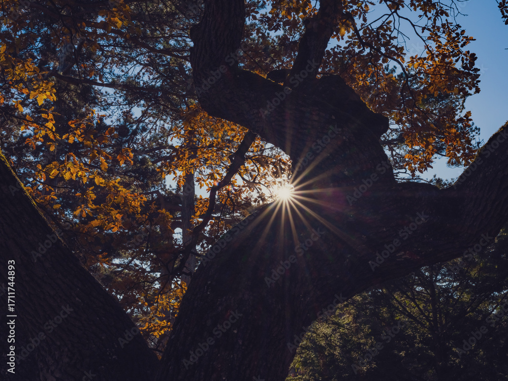 sun rays and tree